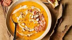 SOUPE DE BUTTERNUT, TARTINES AU REBLOCHON ET LARD FUMÉ